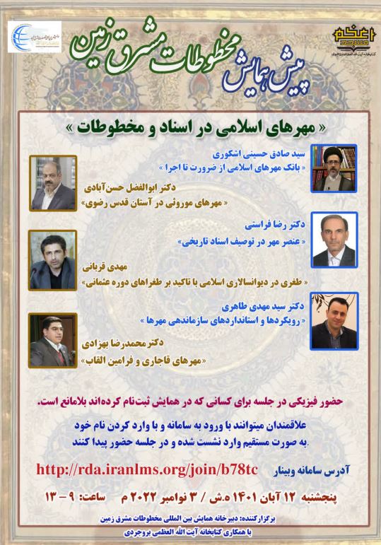 اولین کارگاه: مهرهای اسلامی در اسناد و مخطوطات